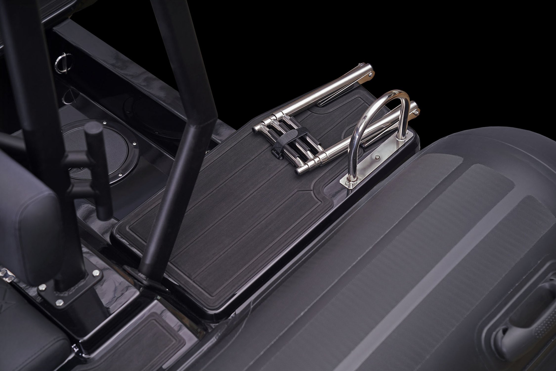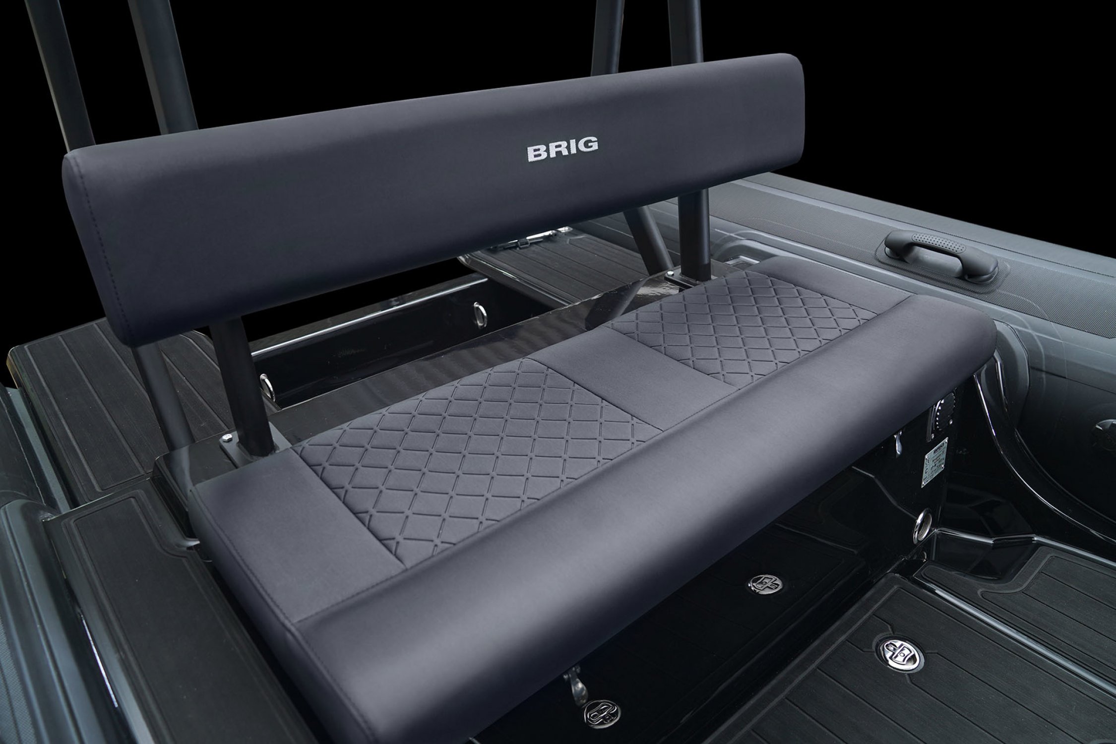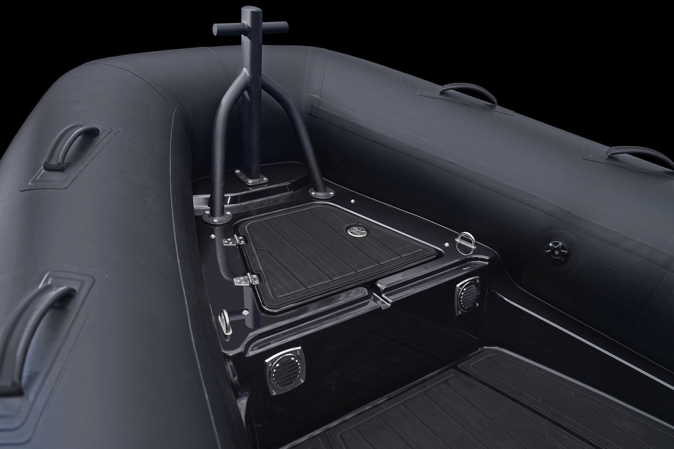 Standaard uitgerust met o.a. : antislip dek, zelflozende kuip, stuurconsole, gecombineerde stuurstoel/bolster, geïntegreerde brandstoftank, waterski-oog, automatische lenspomp, davit hijspunten en hoogwaardige Hypalon tubes.