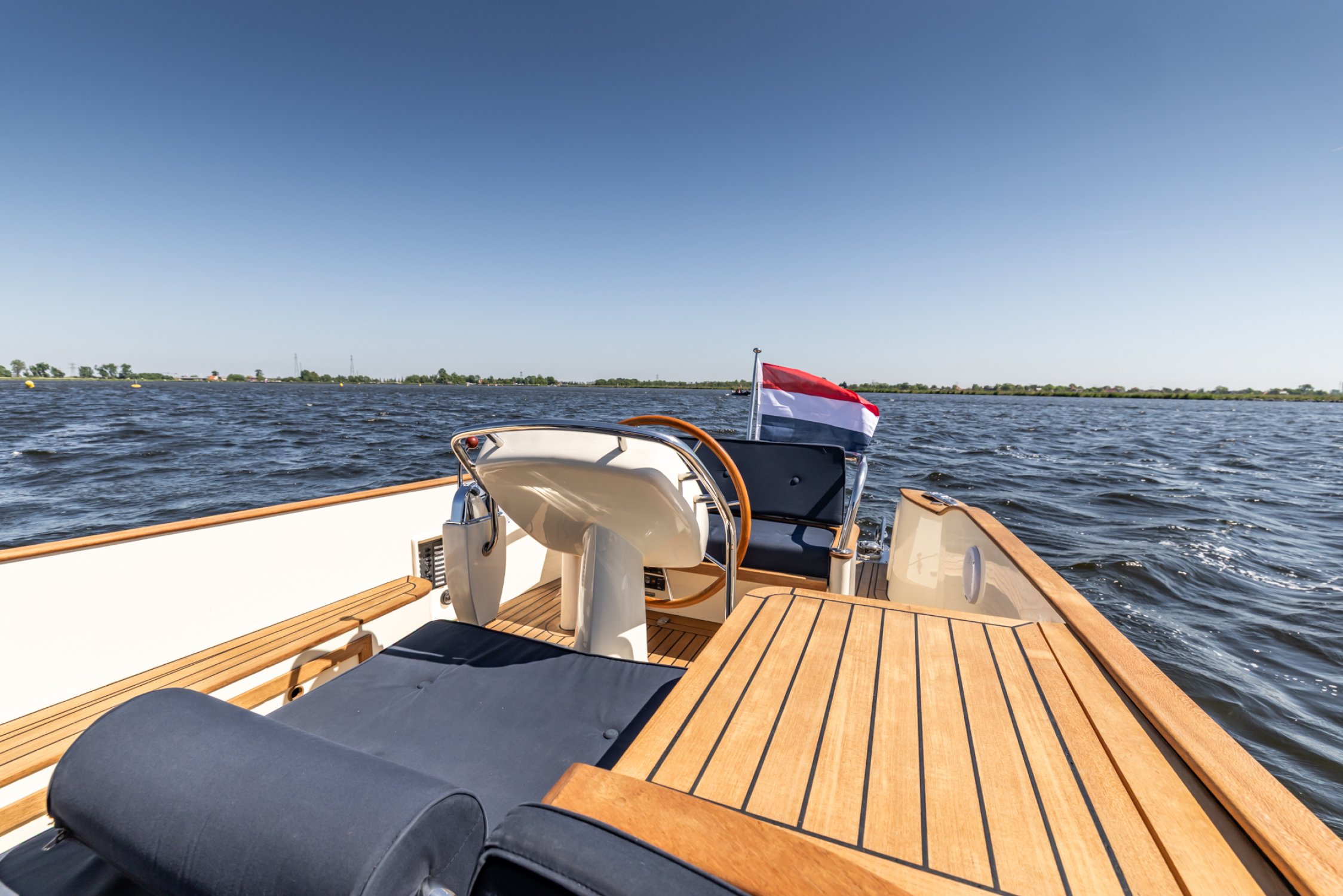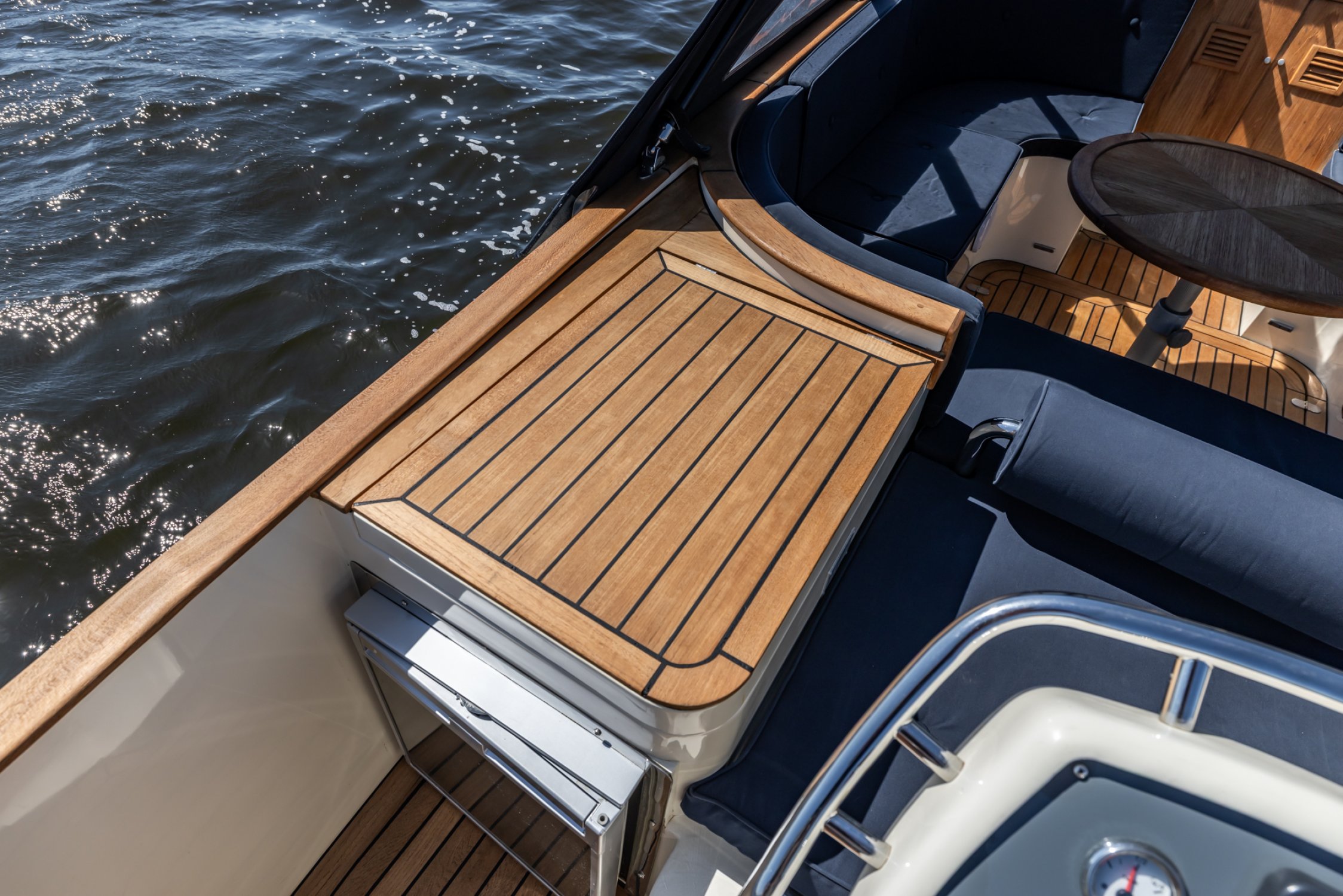Der Rumpf ist professionell in einer einzigartigen Metallic-Lackierung lackiert, wodurch das Boot nicht nur auf dem Wasser auffällt, sondern auch in jedem Hafen sofort ins Auge sticht. Der kraftvolle 250 PS Steyr-Innenbord-Dieselmotor sorgt für beeindruckende Leistungen. Sie können gemütlich cruisen, aber auch mühelos höhere Geschwindigkeiten erreichen, um ein sportliches Erlebnis zu haben.