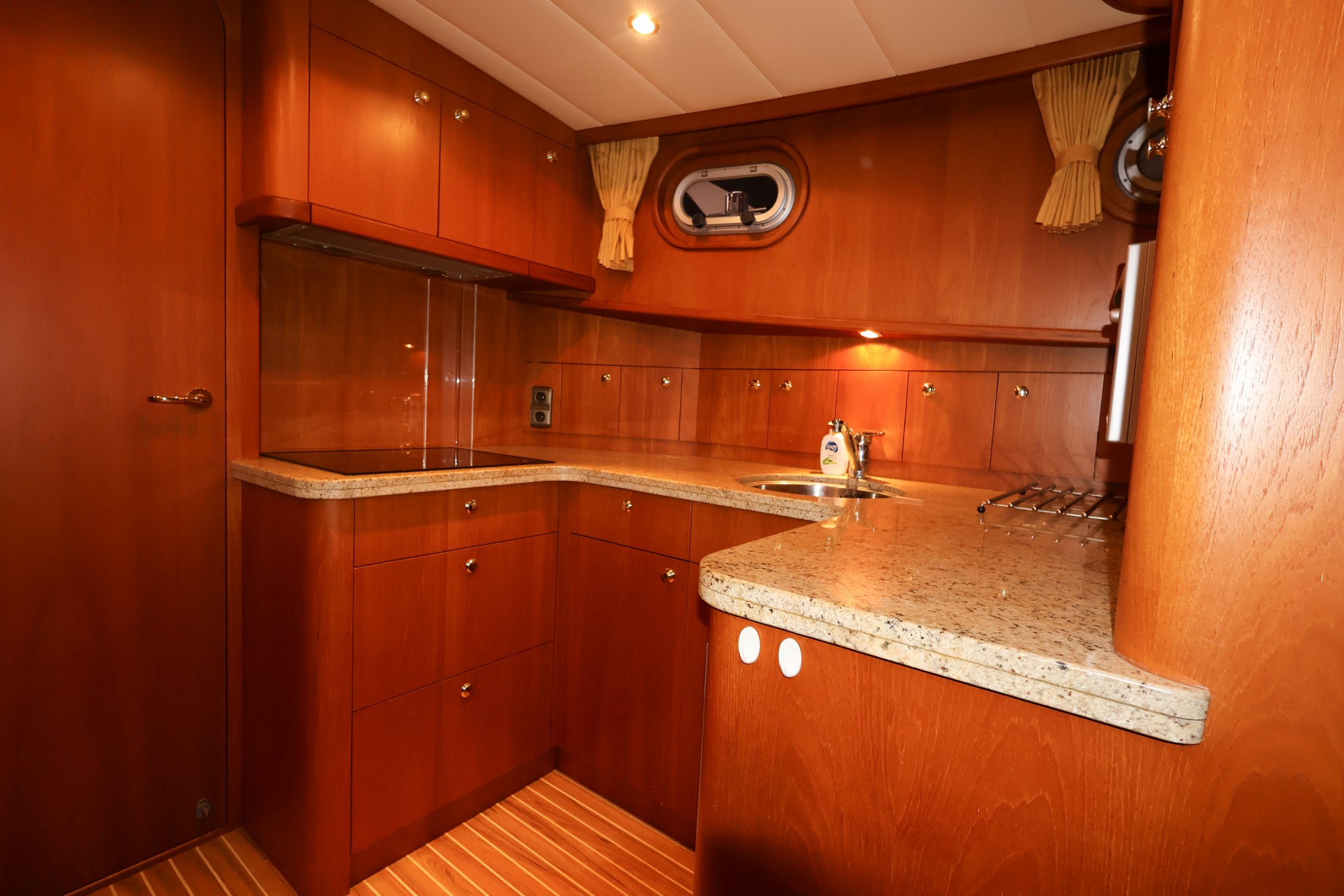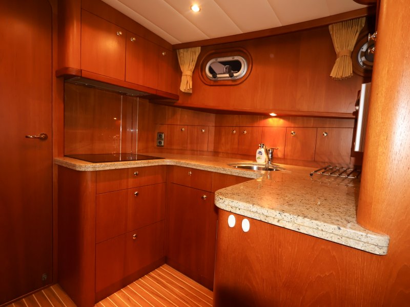 Inside, the cutter offers a generous living space with a warm, nautical atmosphere. The spacious salon with panoramic view, the well-equipped galley and comfortable cabins make longer stays on board a real pleasure. Everything exudes quality - from the woodwork to the technical installation.