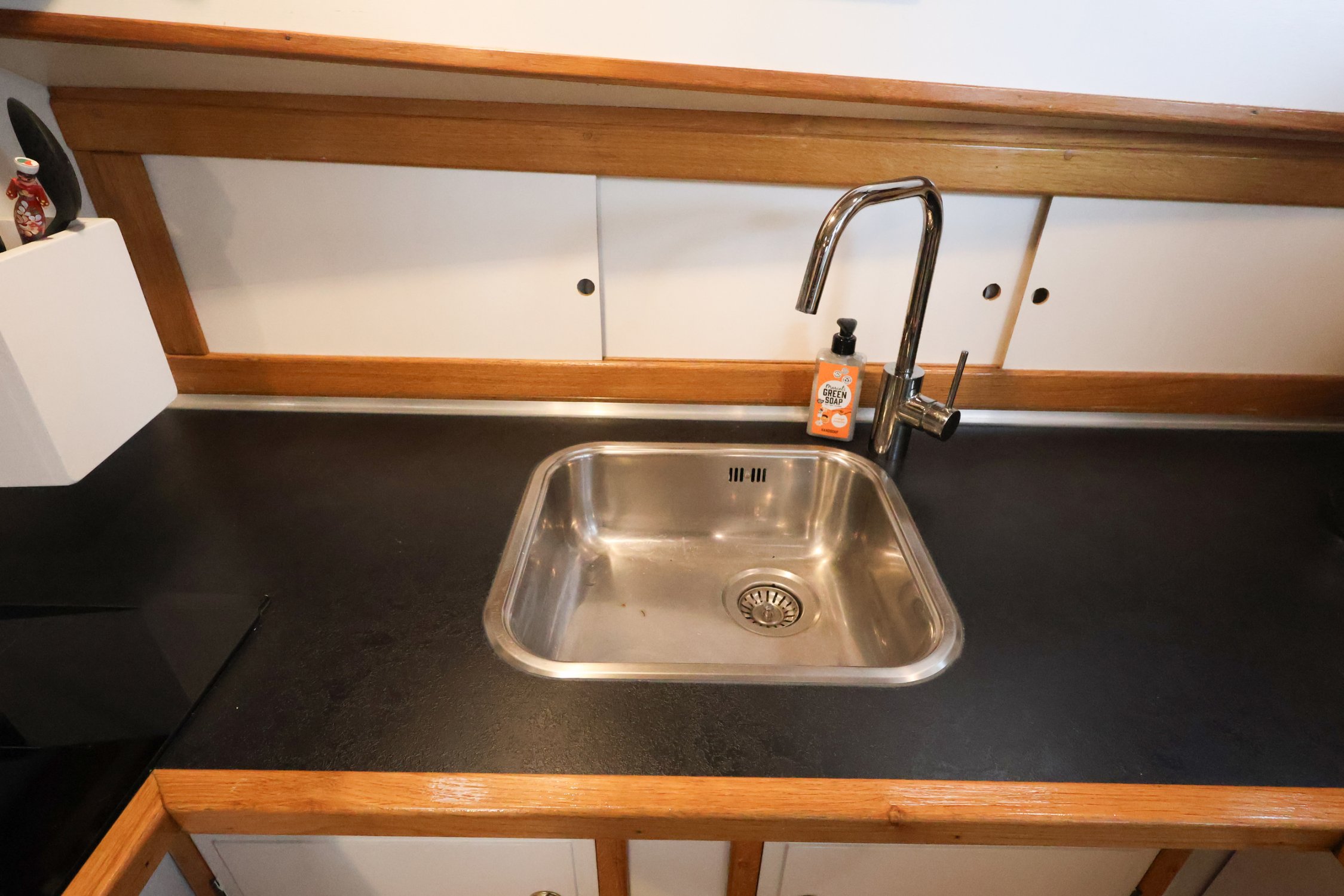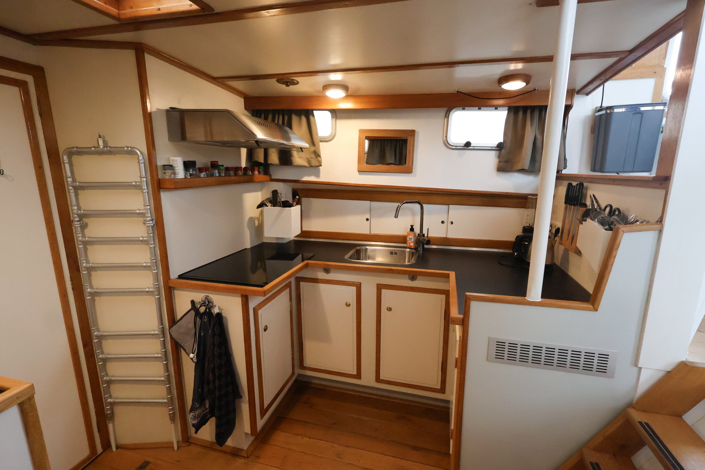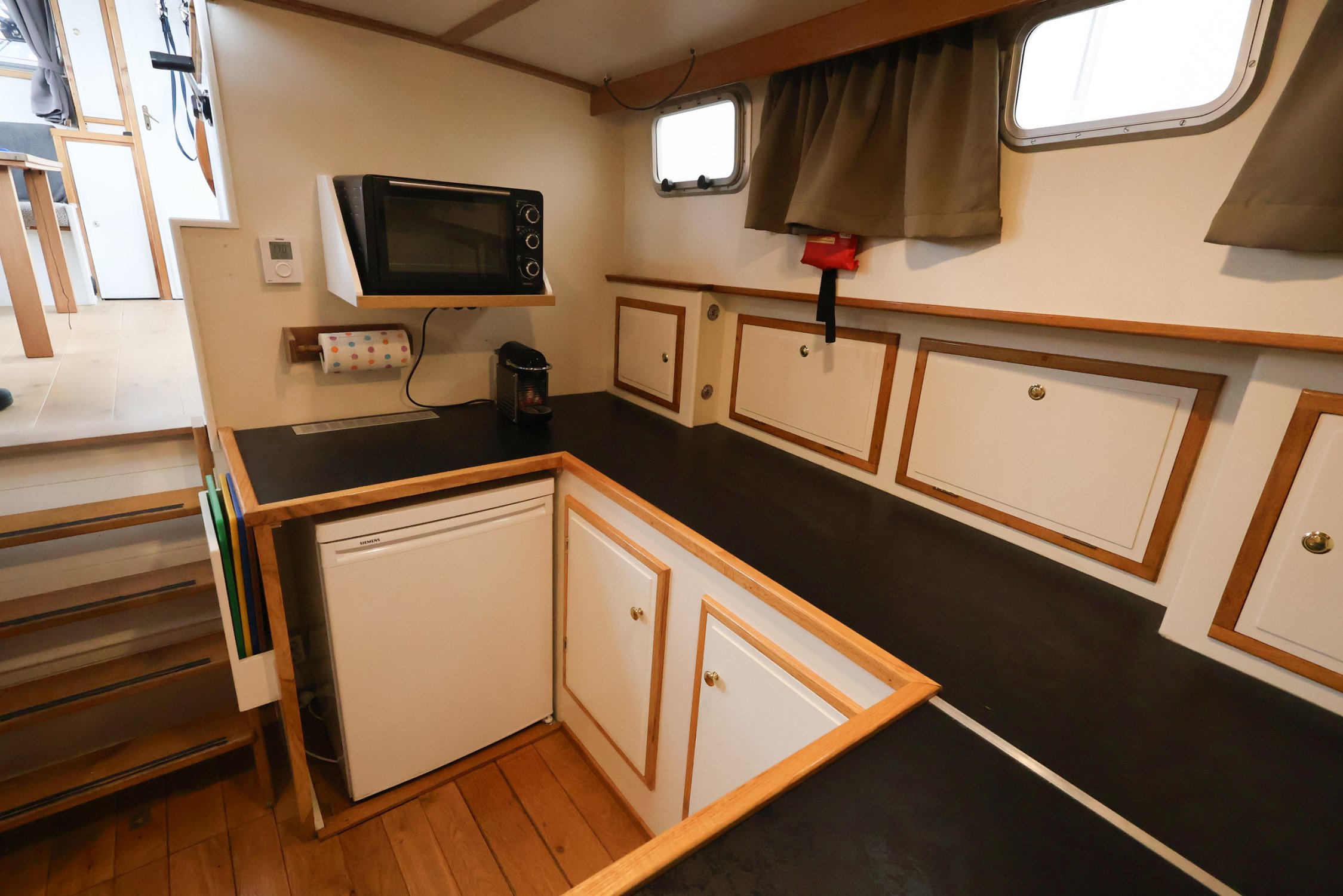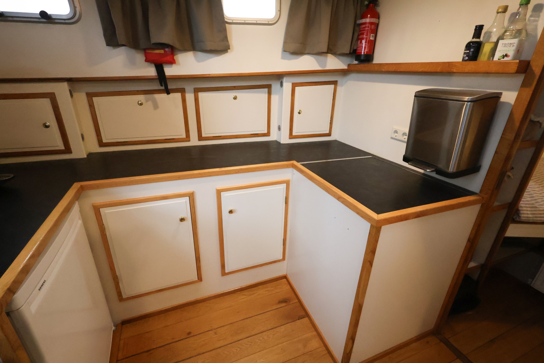 There is nothing to be desired in terms of comfort. The ship has central heating (Kabola HR400 CV) with radiators and kickspaces, a 40 liter boiler, a fully equipped galley with Siemens induction hob, oven and refrigerator, as well as a washing machine.