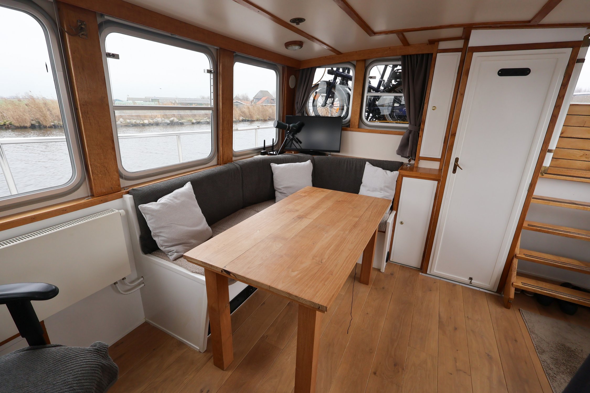 This Kraaijer is known for its solid construction and sailing characteristics. The hull is made of 6 mm steel up to the bilge and 5 mm above, with stainless steel processed in vulnerable places. With a weight of approximately 25 tons (full tanks) and a draught of 1.45 meters, the ship is extremely stable, even in larger waters.