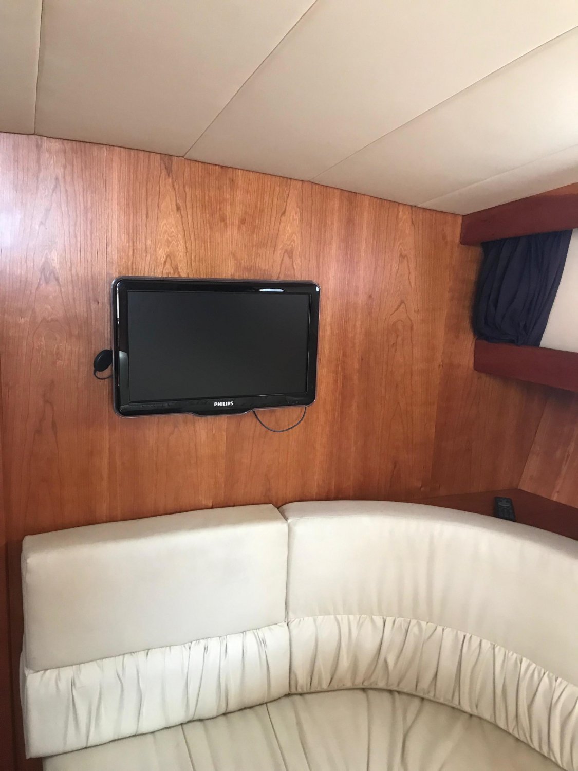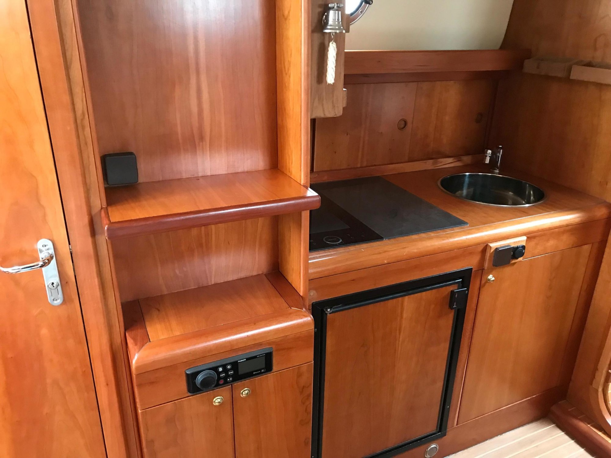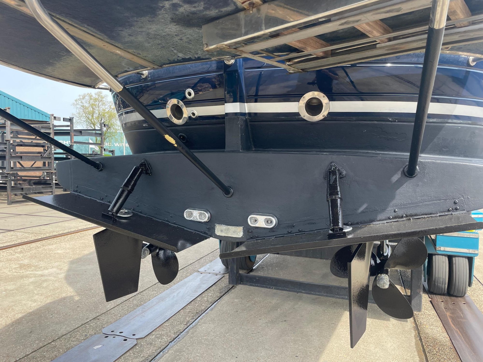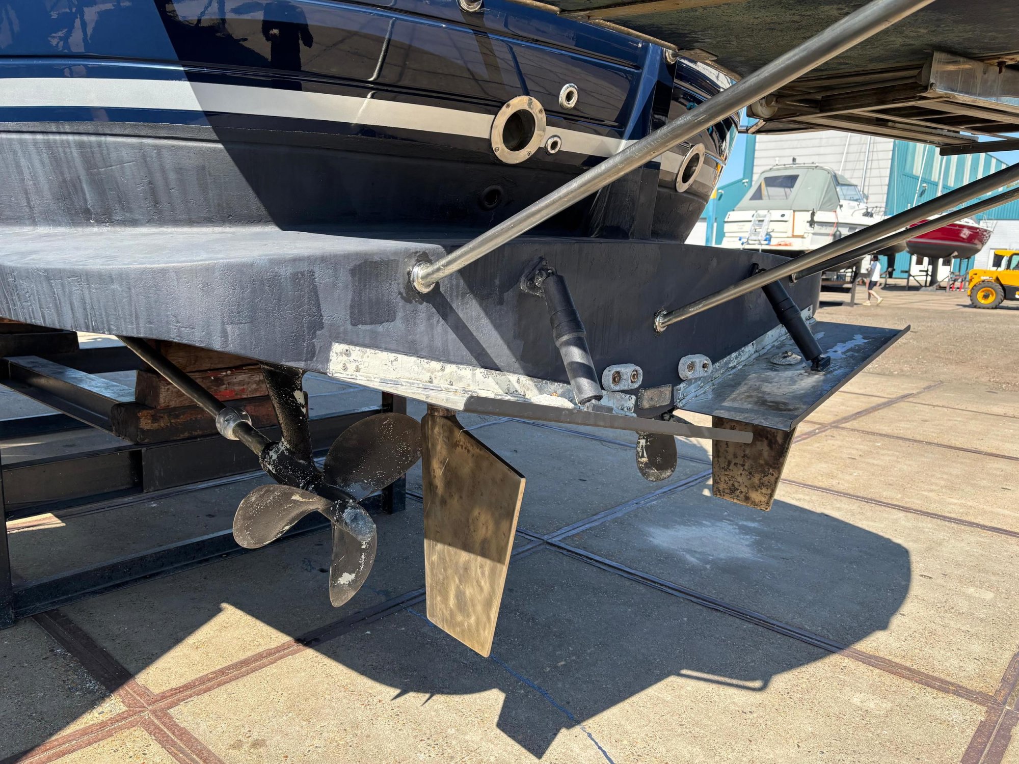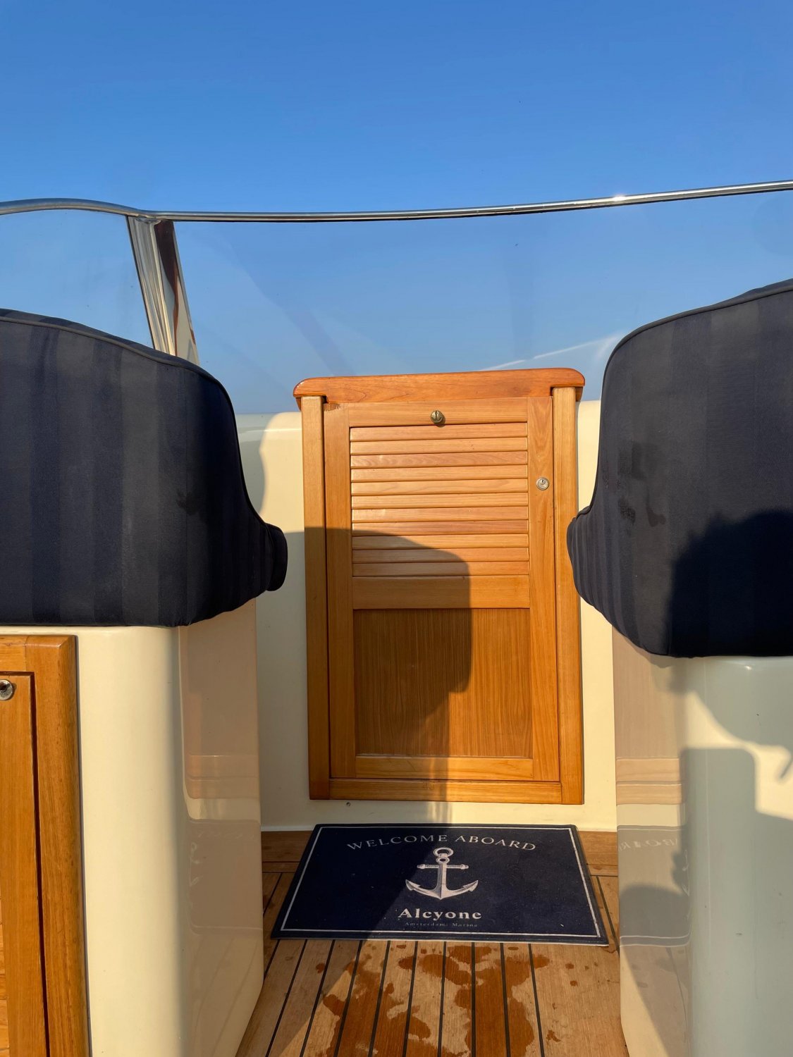 Technically this boat is very well equipped. Think of a bow thruster, trim tabs, hydraulic steering, electric windlass, Webasto heating and hot water system. Navigation is easy with the modern Raymarine Axiom+ 9 plotter (2021) and VHF radio. There is also entertainment with a Fusion audio system and TV with Chromecast.