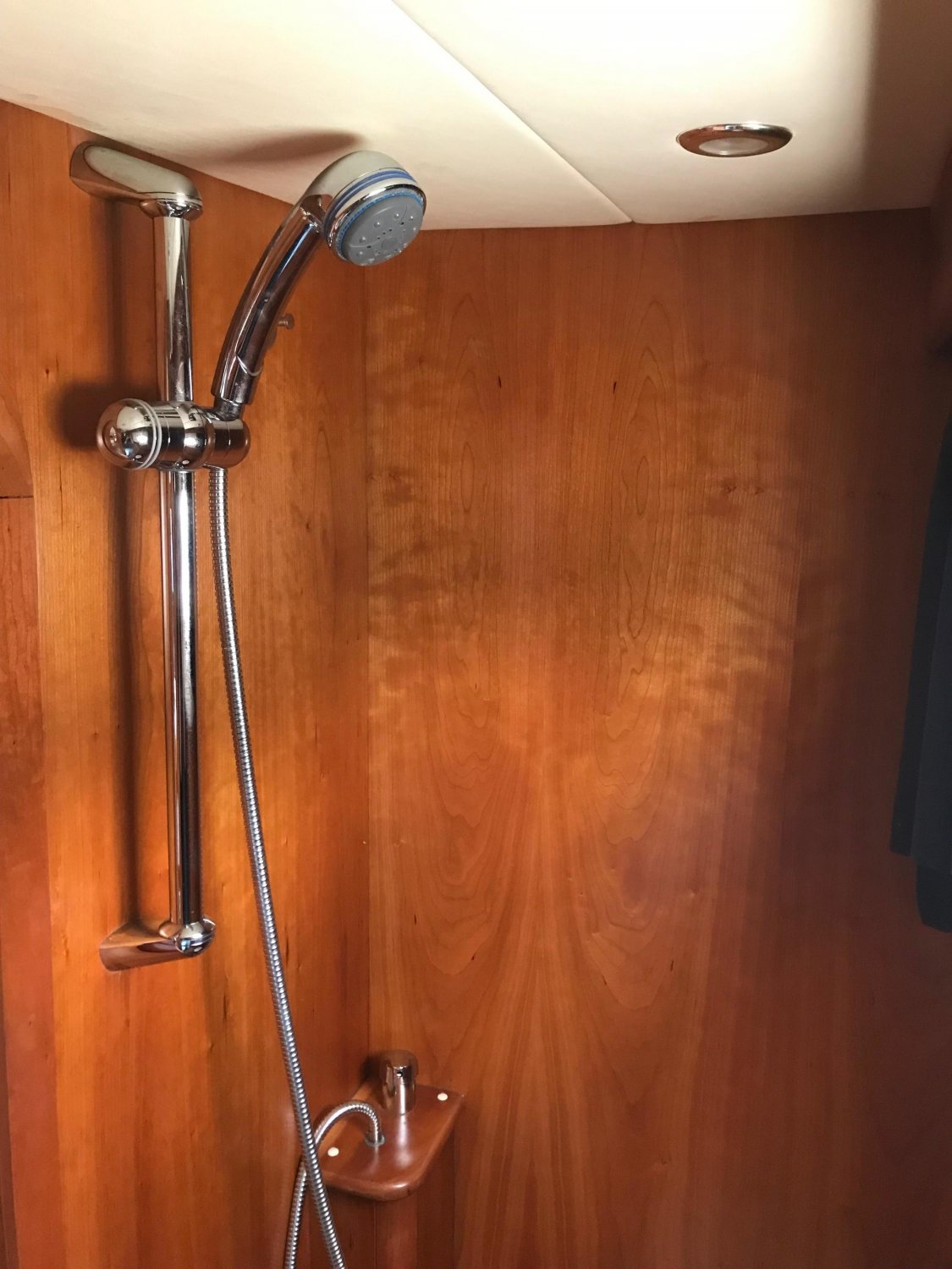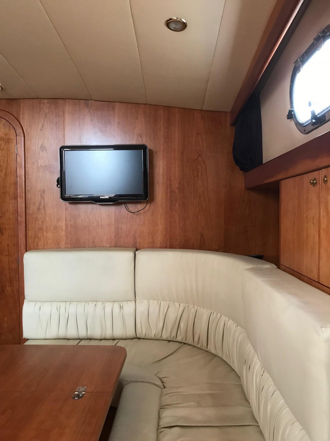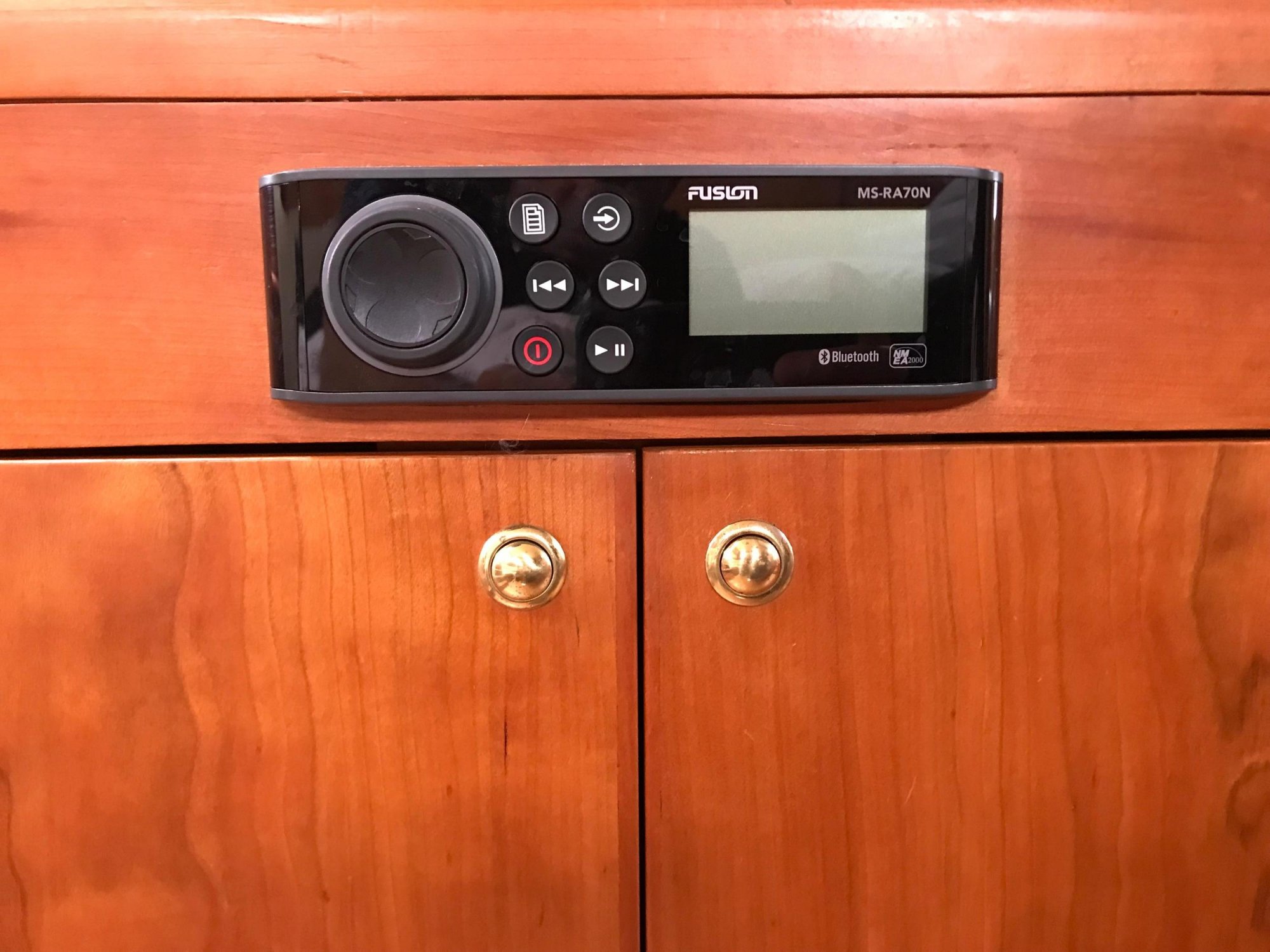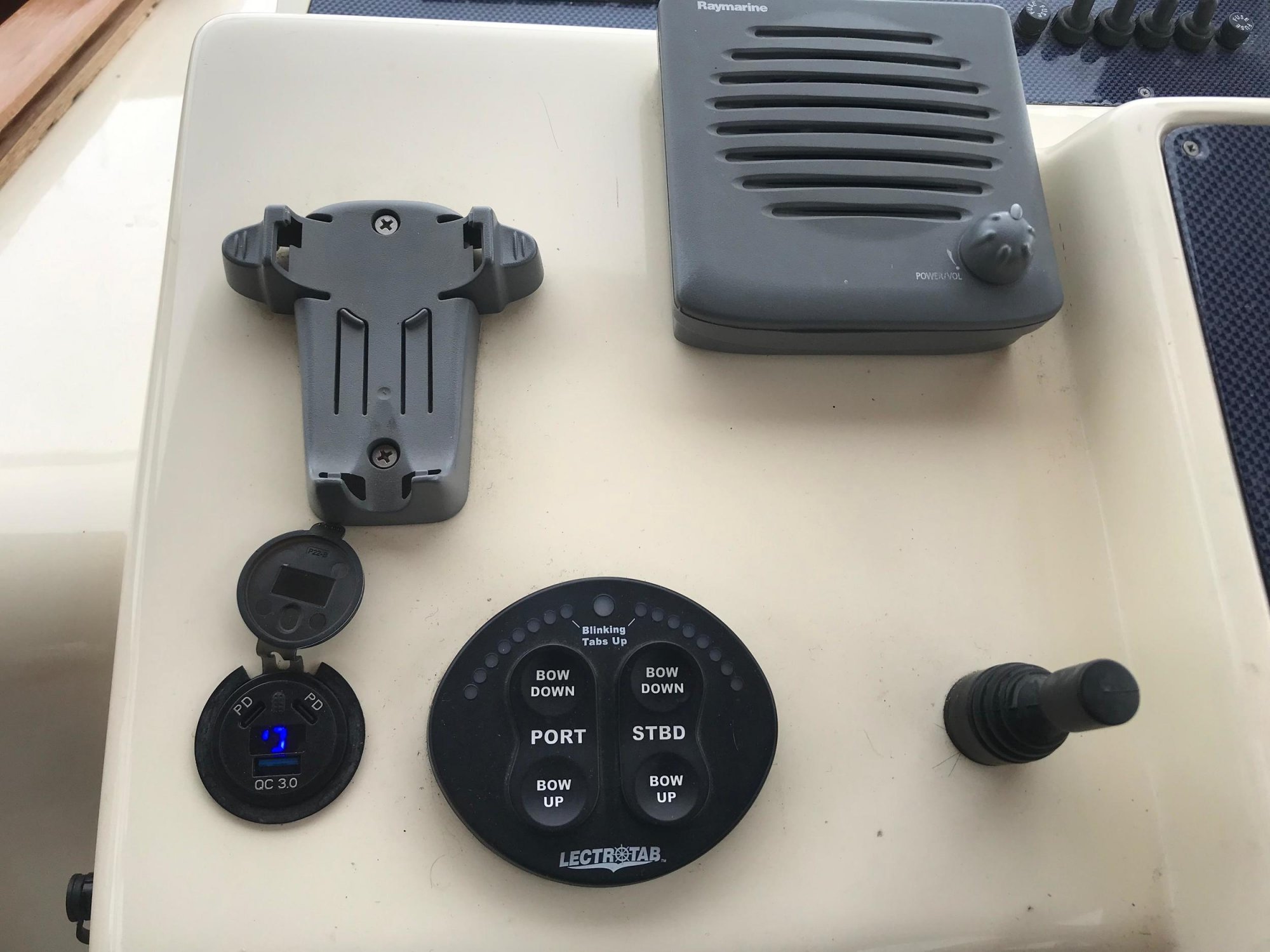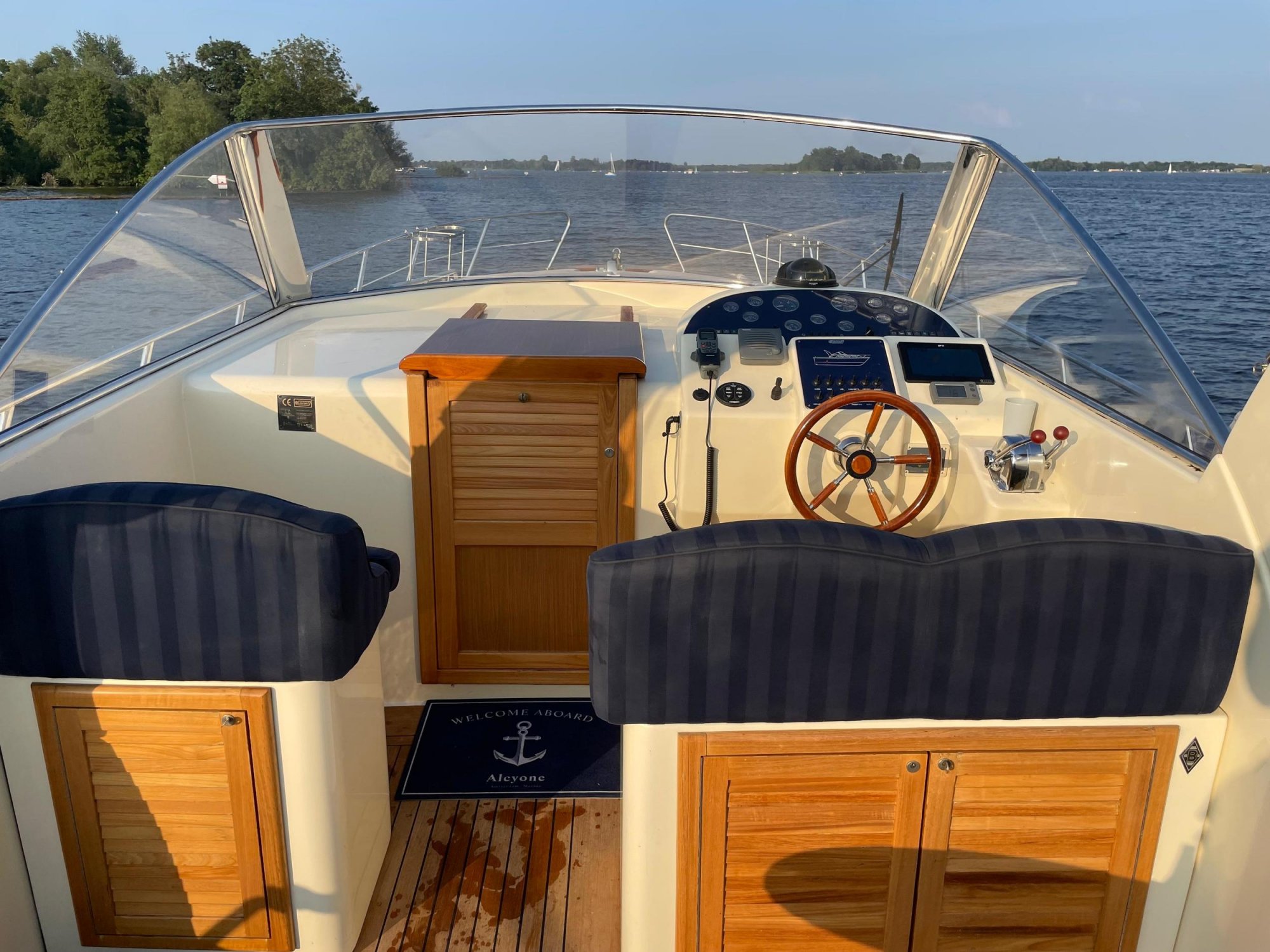 Technically this boat is very well equipped. Think of a bow thruster, trim tabs, hydraulic steering, electric windlass, Webasto heating and hot water system. Navigation is easy with the modern Raymarine Axiom+ 9 plotter (2021) and VHF radio. There is also entertainment with a Fusion audio system and TV with Chromecast.
