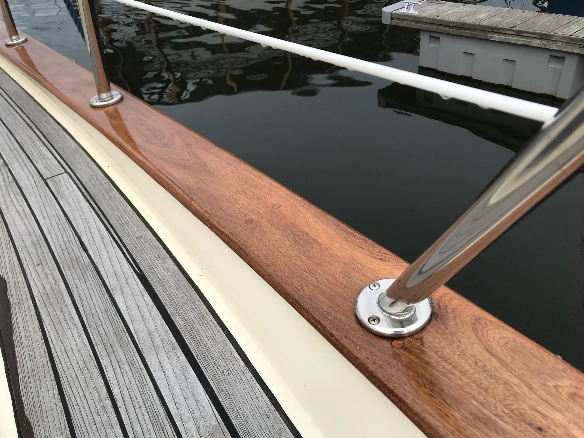 On board, you immediately experience the Italian outdoors. The generous, circular seating in the cockpit seats as many as 8 people, ideal for long summer days on the water. The sun deck with comfortable mattresses invites you to relax, while the spacious teak swim platform with swim ladder and outdoor shower provides ultimate convenience during a refreshing swim. The fully lockable tent (2018) functions as both a cockpit tent and bimini, allowing you to cruise comfortably in all weather conditions.