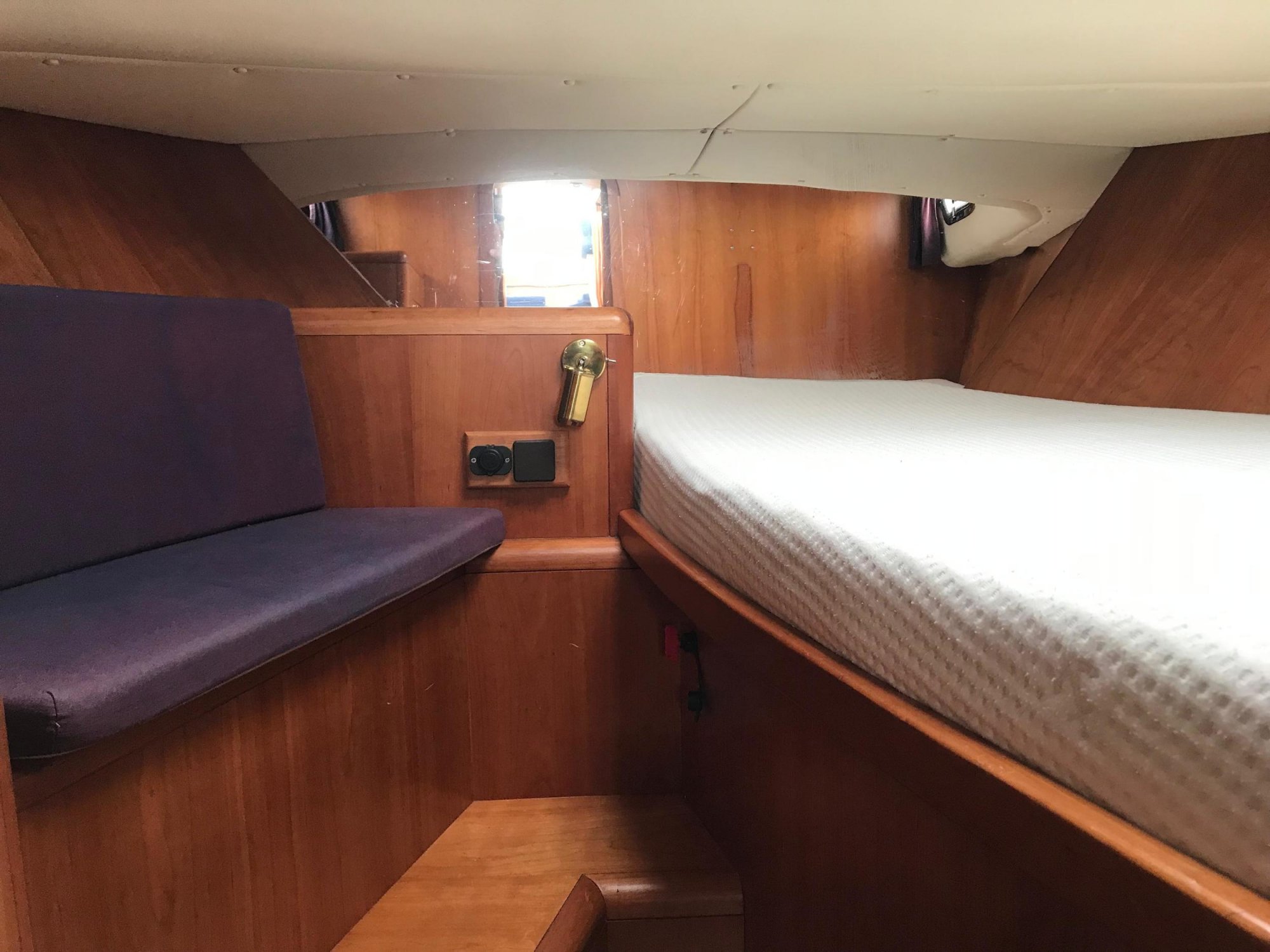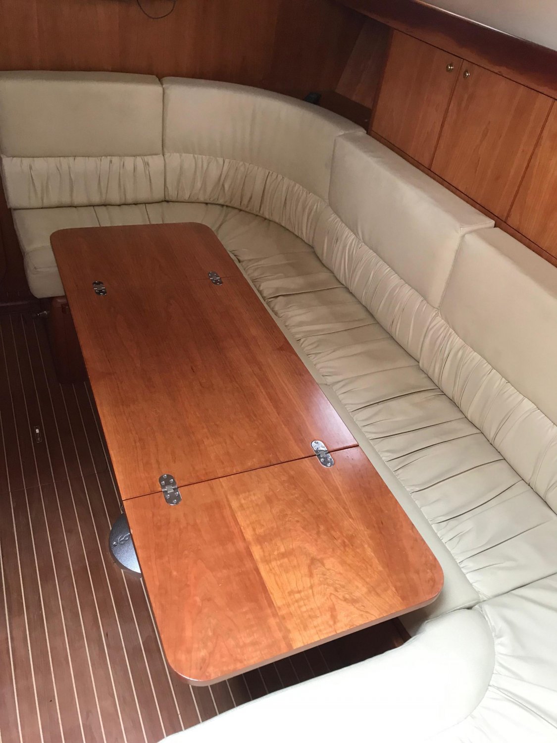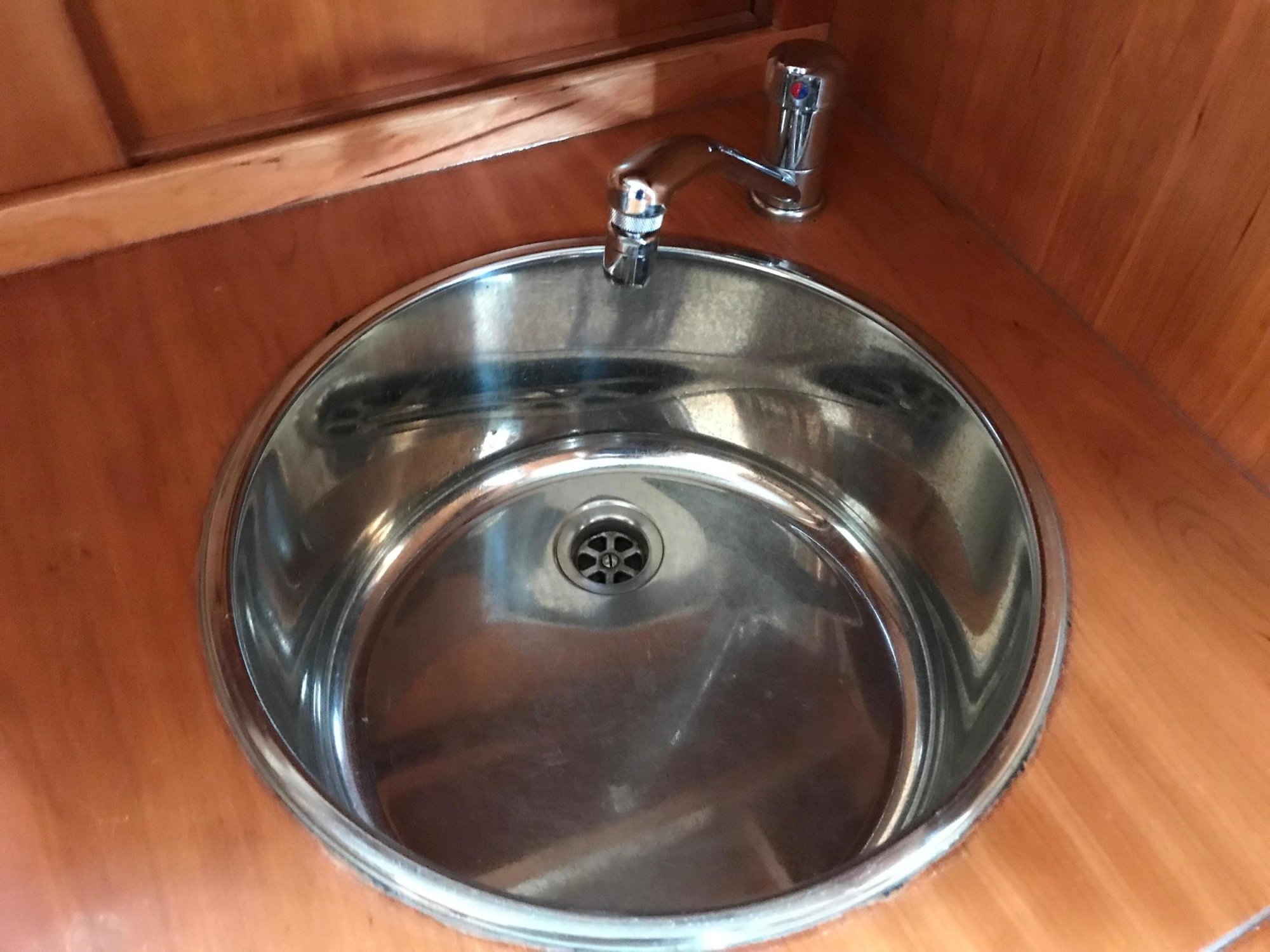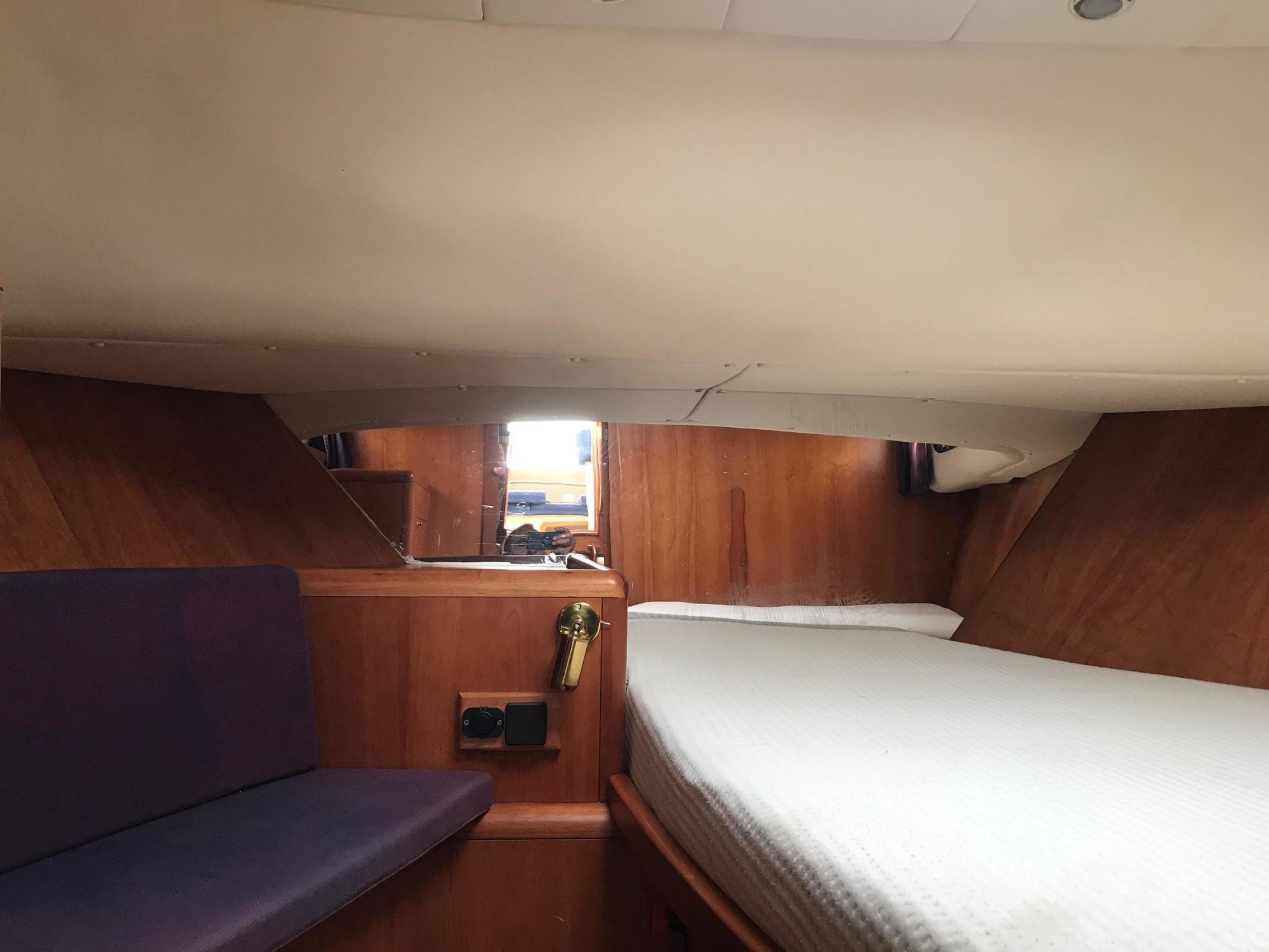 Inside, the Mare Libre offers a surprising amount of space and luxury. With a headroom of approx. 188 cm, a cozy salon with U-bench (convertible into extra bed) and a spacious front cabin with double bed, spending the night on board is no problem at all. The neat bathroom has an electric toilet, shower and sink, which completes the comfort.